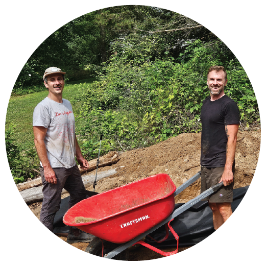Building a patio and beautifying the land around the cabins.